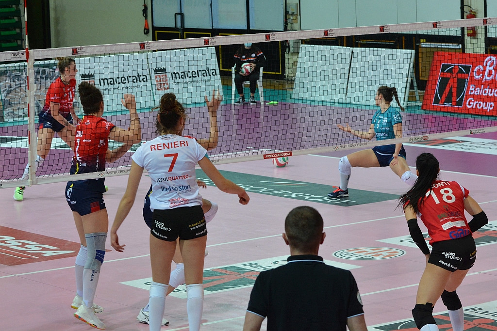 La CBF Balducci HR Macerata concede il bis trovando la dodicesima vittoria consecutiva sul campo, battendo ancora la LPM BAM Mondovì, stavolta al termine di un’infinita maratona conclusa sul 3-2 per le ragazze di Paniconi, passate da un altro possibile clamoroso 3-0 alla beffa di una sconfitta in rimonta per mano della truppa di Delmati.