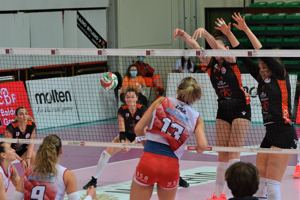 CBF BALDUCCI HR MACERATA: Maruotti 7, Mancini 9, Peretti 5, Lipska 28, Martinelli 12, Renieri 16, Bisconti (L), Pomili 2, Rita 1, Giubilato, Galletti. Non entrate: Sopranzetti (L), Pirro. All. Paniconi.