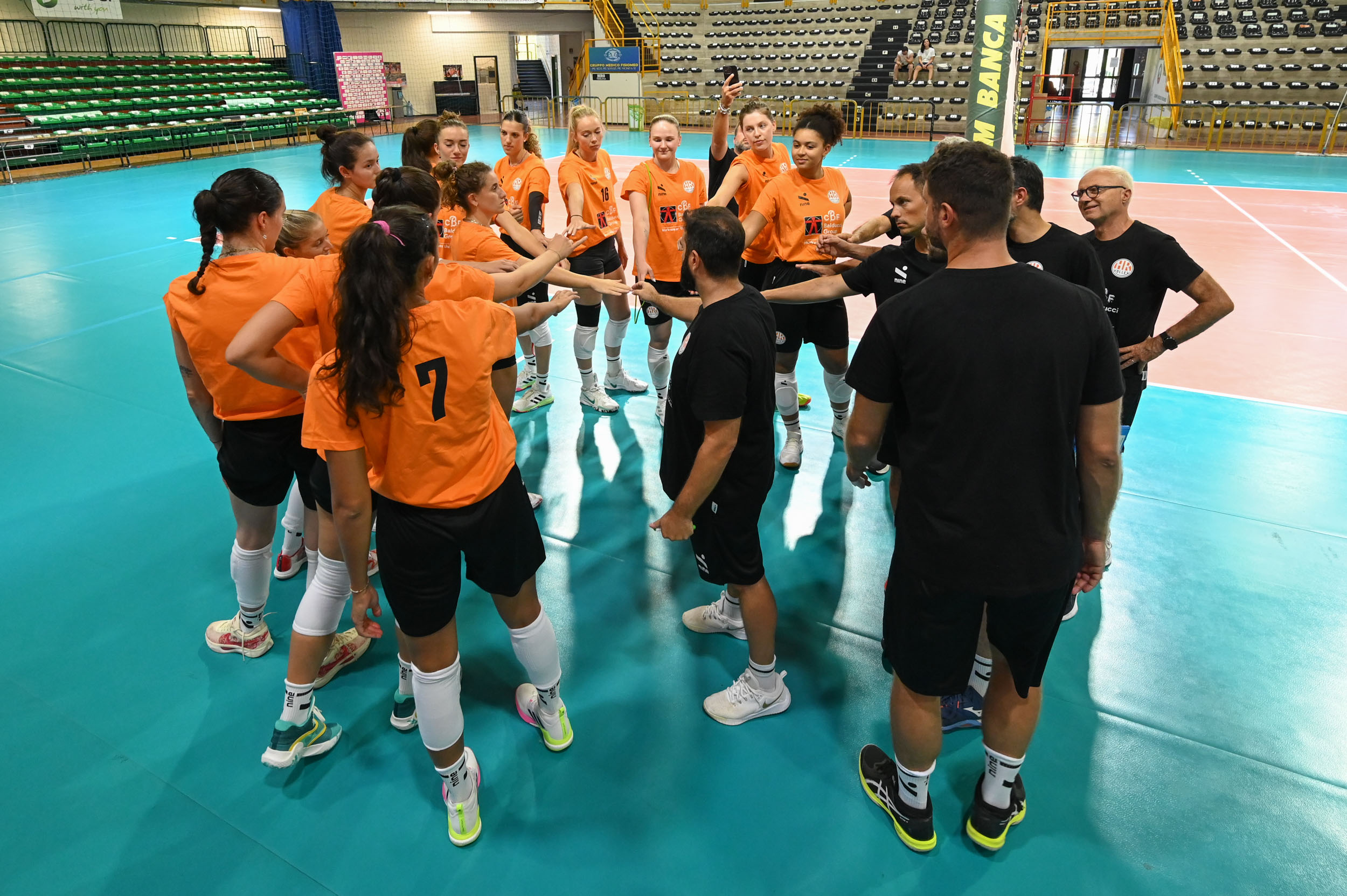 È tornata al lavoro nel pomeriggio di lunedì la CBF Balducci HR, dopo il bagno di folla di sabato sera per la presentazione alla Città di Macerata, per cominciare la terza settimana di preparazione verso l’inizio della nuova stagione 2025/26. Settimana tutta in palestra per le arancionere, alle prese con ben quattro sedute di pesi e cinque di tecnica, un ritmo in crescendo quando manca ancora più di un mese all’esordio nel campionato di Serie A1, previsto per il 6 ottobre al Fontescodella contro Cuneo.