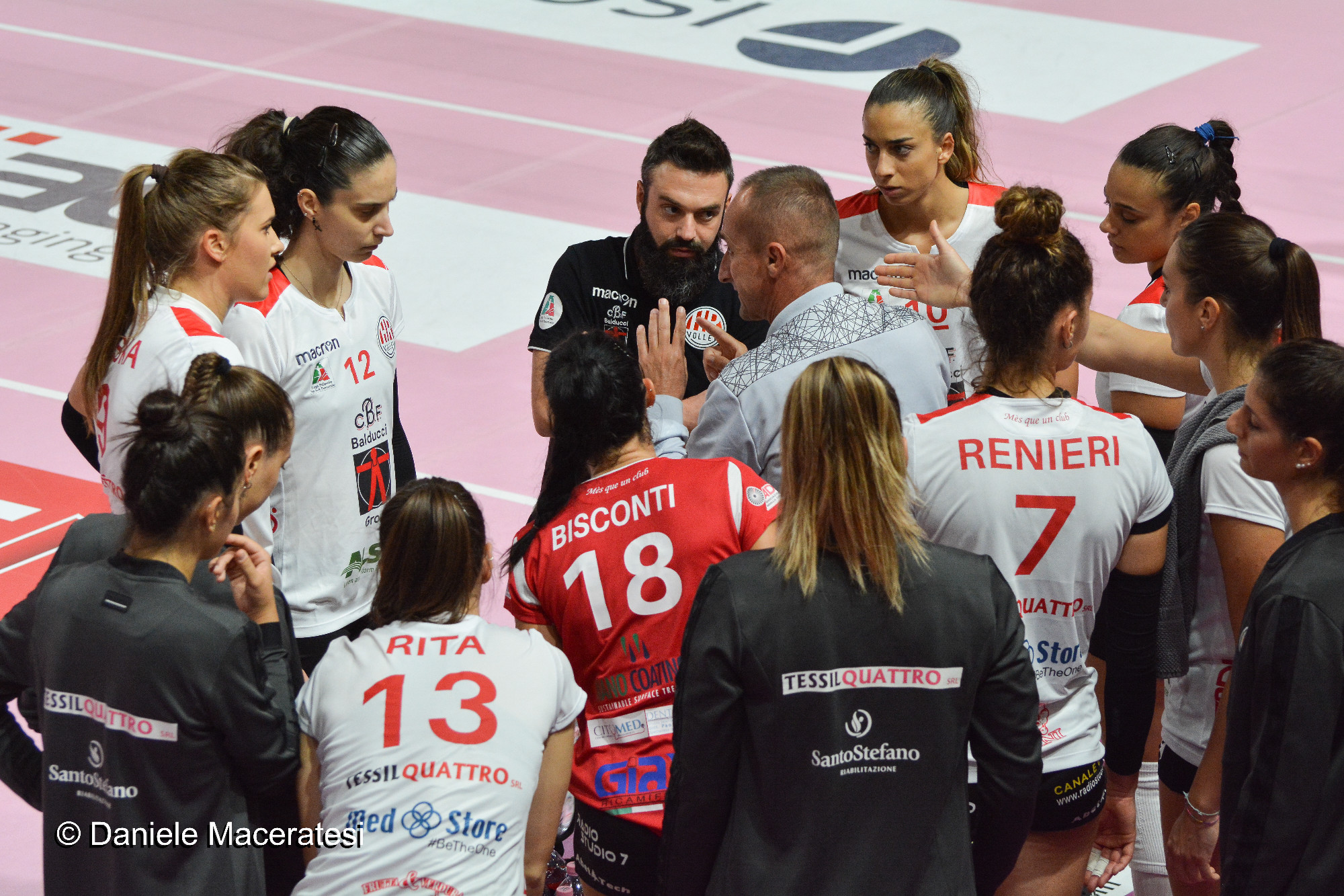 “Una reazione di carattere c’è stata. Peccato perché soprattutto nel terzo set abbiamo fatto di tutto per rimetterla in piedi ed avevamo recuperato rifacendoci sotto sul 23-20. Purtroppo speravamo in una partita diversa, a prescindere da assenze dell’ultimo momento sicuramente abbiamo le qualità per fare meglio. Direi che quella di San Giovanni in Marignano è stata una partita un po’ paradossale.”