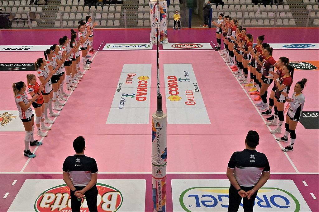 Si ritrovano faccia a faccia le due finaliste di Rimini per una partita però profondamente diversa dall’ultimo atto della passata edizione visti i profondi cambiamenti in rosa, in particolare per Macerata che ritroverà dall’altra parte della rete, oltre a Veronica Taborelli, anche due ex della passata stagione, il libero Veronica Bisconti e la schiacciatrice Morgana Giubilato.