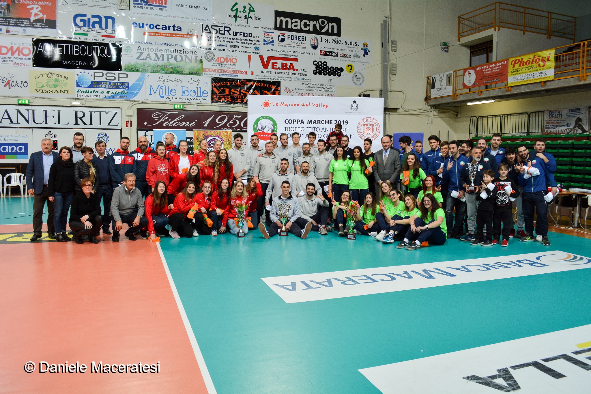 La ventesima edizione della Coppa Marche di serie C si è da poco conclusa e anche quest’anno il trofeo dedicato alla memoria di Adrio Giacomini e Tito Antinori, storici dirigenti della Pallavolo Macerata e dell’Helvia Recina Volley, non ha risparmiato emozioni e sorprese. Alla palestra Fratelli Cervi di Colleverde è andato di scena il derby tutto maceratese tra la US Volley ‘79 Civitanova Marche e la Montalbano Macerata, un match che già alla vigilia preannunciava emozioni forti, molto complicato da pronosticare e che non ha affatto deluso le aspettative. Dopo una gara al cardiopalmo tra continui ribaltamenti di fronte la formazione civitanovese si è imposta 3 - 2 sui padroni di casa. Una partenza super per gli ospiti di coach Bernetti, con un passato da allenatore proprio nella Montalbano, che fanno loro i primi due set sul 25-20 e 25-23. I civitanovesi appaiono più compatti e convinti rispetto ai ragazzi di coach Baleani, i quali si reggono sulle sferzate di un Daniele Furiassi in grande spolvero, suo il premio di miglior giocatore della finale. Nel terzo set però arriva la svolta, la Montalbano cambia registro e inizia la sua scalata. Accorcia prima le distanze chiudendo il terzo parziale sul 25-18 e pareggia i conti nel quarto set sul 25-19. Il morale è alle stelle e l’inerzia del match sembra poter volgere a favore dei maceratesi ma nel tie-break la US Volley ‘79 è un fiume in piena e infila cinque punti consecutivi che valgono il momentaneo 5-0. I maceratesi, annichiliti dalla partenza a razzo degli avversari, provano a rilanciarsi ma il vantaggio di Civitanova è incolmabile e sono costretti alla resa sul 15-8 che mette definitivamente la parola fine all’incontro nel tripudio rossoblu. E’ il secondo trionfo per la US Volley ‘79 dopo il precedente del 2017. Nella finalissima al femminile della Mar.Pel. Arena, invece, la Megabox Volley Montecchio di coach Musumeci, detentrice del trofeo, è costretta a cedere il titolo alla Edilmonaldi Amandola, guidata dalla coppia Tassi-Cupelli, che si impone con un rotondo 3-0 (25-23; 25-17; 26-24). Una grande prestazione per le amandolesi, guidate dal MVP del match, Giada Seghetta, le quali hanno vita dura soprattutto nel primo e terzo set. Proprio nell’ultimo parziale arriva il finale da “sliding doors” quando, sul 24 pari, Montecchio getta al vento il match con due errori in sequenza, consegnando il trofeo nelle mani di Amandola che entra ufficialmente nell’albo d’oro della competizione con il suo primo trofeo. Al termine delle sfide la cerimonia conclusiva ha avuto luogo presso la Mar.Pel Arena, casa della Menghi Shoes e della Roana CBF, militanti rispettivamente nella A2 maschile e B1 femminile. Una premiazione che ha goduto della significativa presenza di svariati ospiti istituzionali a cominciare da Roberto Cambriani, presidente del comitato FIPAV Macerata, e dall’assessore allo sport del comune di Macerata, Alferio Canesin, per poi proseguire con Lorenzo Giacobbi e Loredana Agrifoglio, consiglieri della FIPAV Marche. Presenti per il CONI Marche il presidente Fabio Luna ed il vice presidente Giovanni Torresi.
