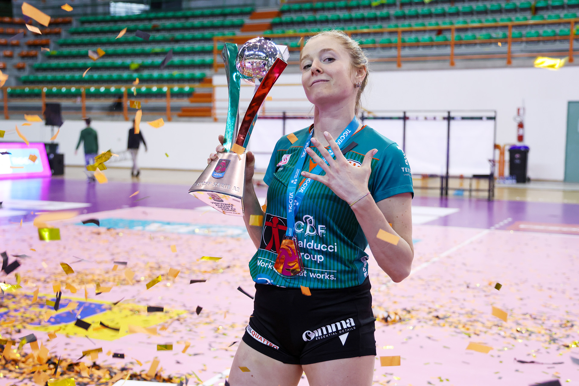 La conferma di Giulia Bresciani garantisce alla rosa 2025/26 in Serie A1 – campionato che ritrova per la terza volta nella sua carriera dopo le esperienze di Chieri (2018/19) e Novara (2022/23) – la possibilità di avere a disposizione una delle giocatrici più vincenti nella recente storia della Serie A2. Nel palmares del libero ci sono infatti ben cinque promozioni nel massimo campionato, ottenute con le maglie di Bolzano (2015), Chieri (2018), Vallefoglia (2021), oltre alle due con la CBF Balducci HR (2022 e 2025). Nel suo albo d’oro anche una Coppa Italia di A2 (Bolzano, 2015).