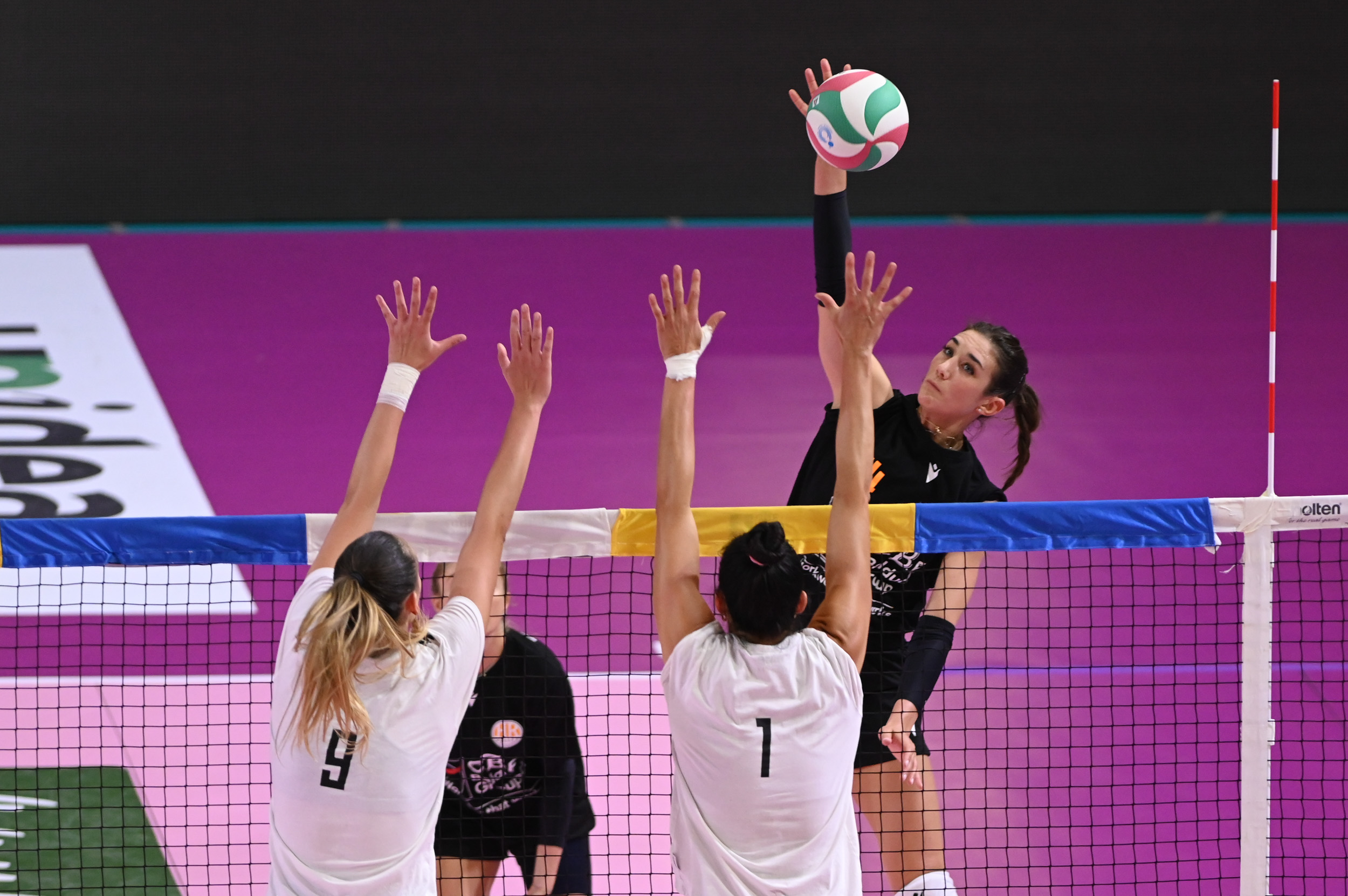 Nel primo set ottima partenza della CBF Balducci HR che lavora molto bene nella fase di difesa e contrattacco (6-2) e anche al servizio (ace di Fiesoli, 9-4). Ortolani e Saguatti confezionano il -2 per le romagnole (9-7) ma Mazzon si esalta in primo tempo (11-7). L’opposta della Omag punge al servizio (13-11), le squadre ora trovano buona continuità in cambio palla e si va avanti col +2 arancionero fino al contrattacco di Nardo (20-19). Mazzon spinga ancora avanti le arancionere (23-19), Bolzonetti trova l’ace del 24-19 e sempre la centrale veneta chiude 25-22.