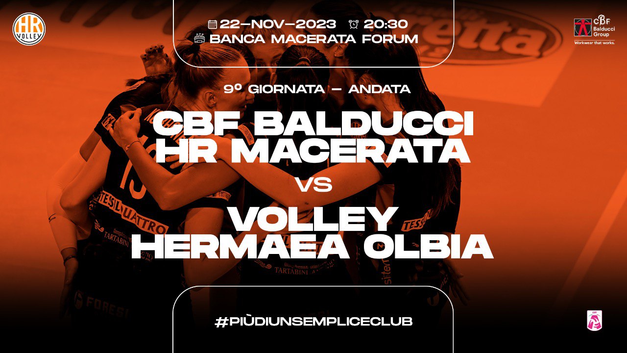 HR Volley informa che è aperta la prevendita biglietti per il match tra CBF Balducci HR Macerata e Volley Hermaea Olbia, in programma mercoledì 22 novembre (ore 20.30) al Banca Macerata Forum, nona giornata di andata Regular Season Serie A2 femminile.