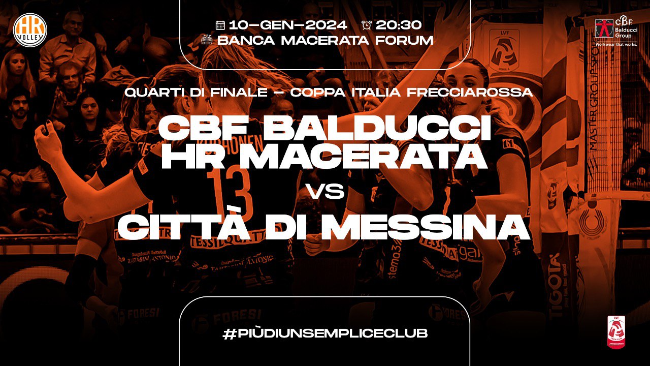 HR Volley informa che è aperta la prevendita biglietti per il match tra CBF Balducci HR Macerata e Città di Messina, in programma mercoledì 10 gennaio (ore 20.30) al Banca Macerata Forum, Quarti di Finale di Coppa Italia Frecciarossa Serie A2 femminile.