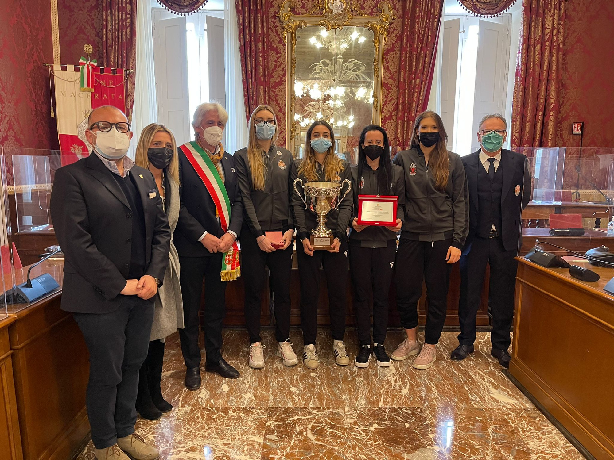 A fare gli onori di casa il sindaco Sandro Parcaroli e l’assessore allo Sport Riccardo Sacchi che hanno espresso alla squadra i complimenti ed i sentimenti di orgoglio a nome della città e hanno consegnato al presidente Paolella il Premio MacerataPiù, un riconoscimento ideato dall'assessore Sacchi per sottolineare il valore dello sport e premiare le eccellenze sportive di Macerata sia sotto il profilo dei risultati che dell'etica sportiva. Presenti alla breve cerimonia anche la vice sindaco Francesca D’Alessandro e alcuni consiglieri comunali.