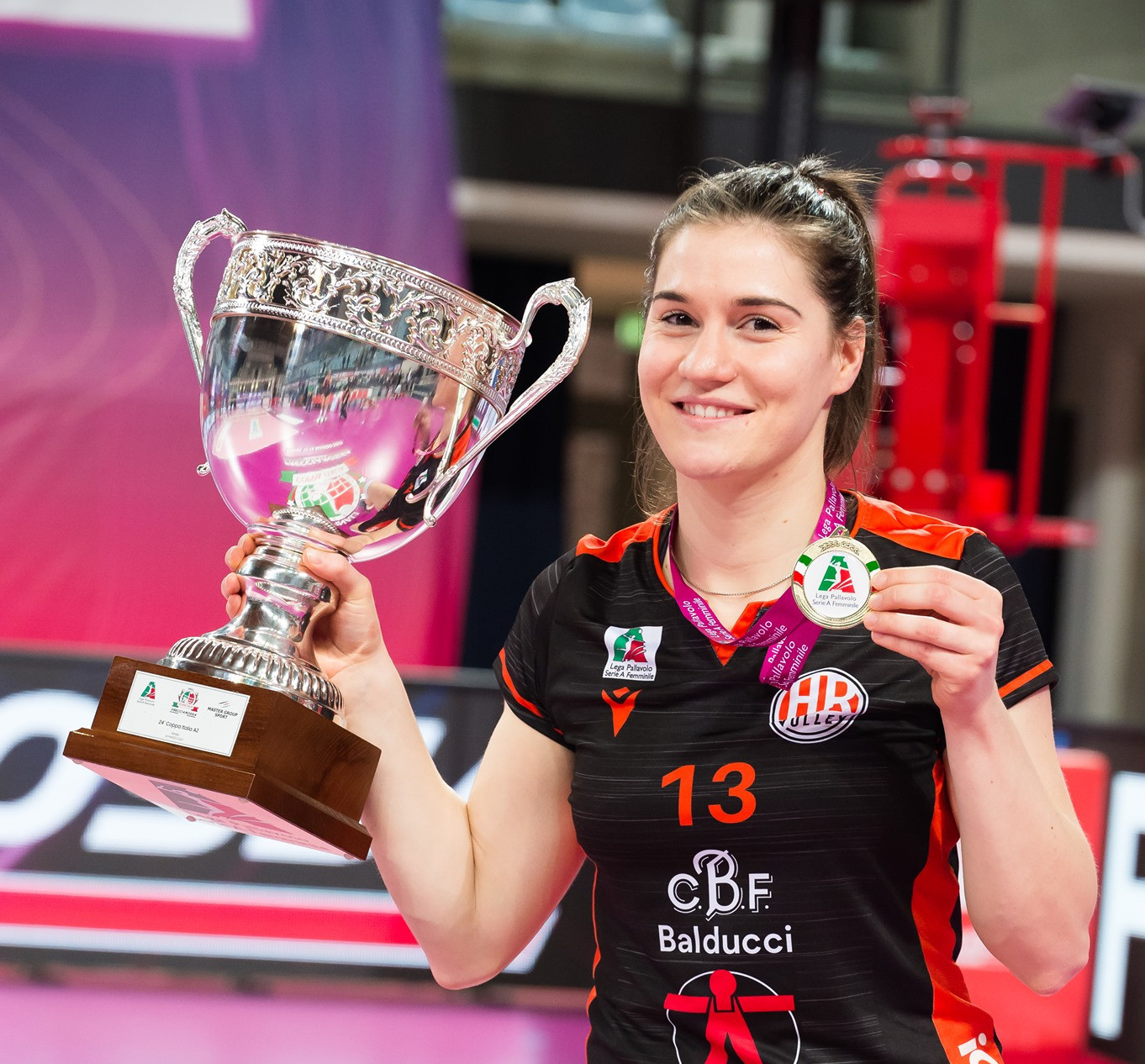 Dalla B1 alla conquista dell'A2, impreziosita dalla conquista della Coppa Italia, la solidità della squadra di coach Luca Paniconi è stata anche quella della centrale recanatese, sempre una colonna preziosissima nei suoi quattro anni di militanza, in campo e nel gruppo, grazie alla sua affidabilità ed alla sua serietà.