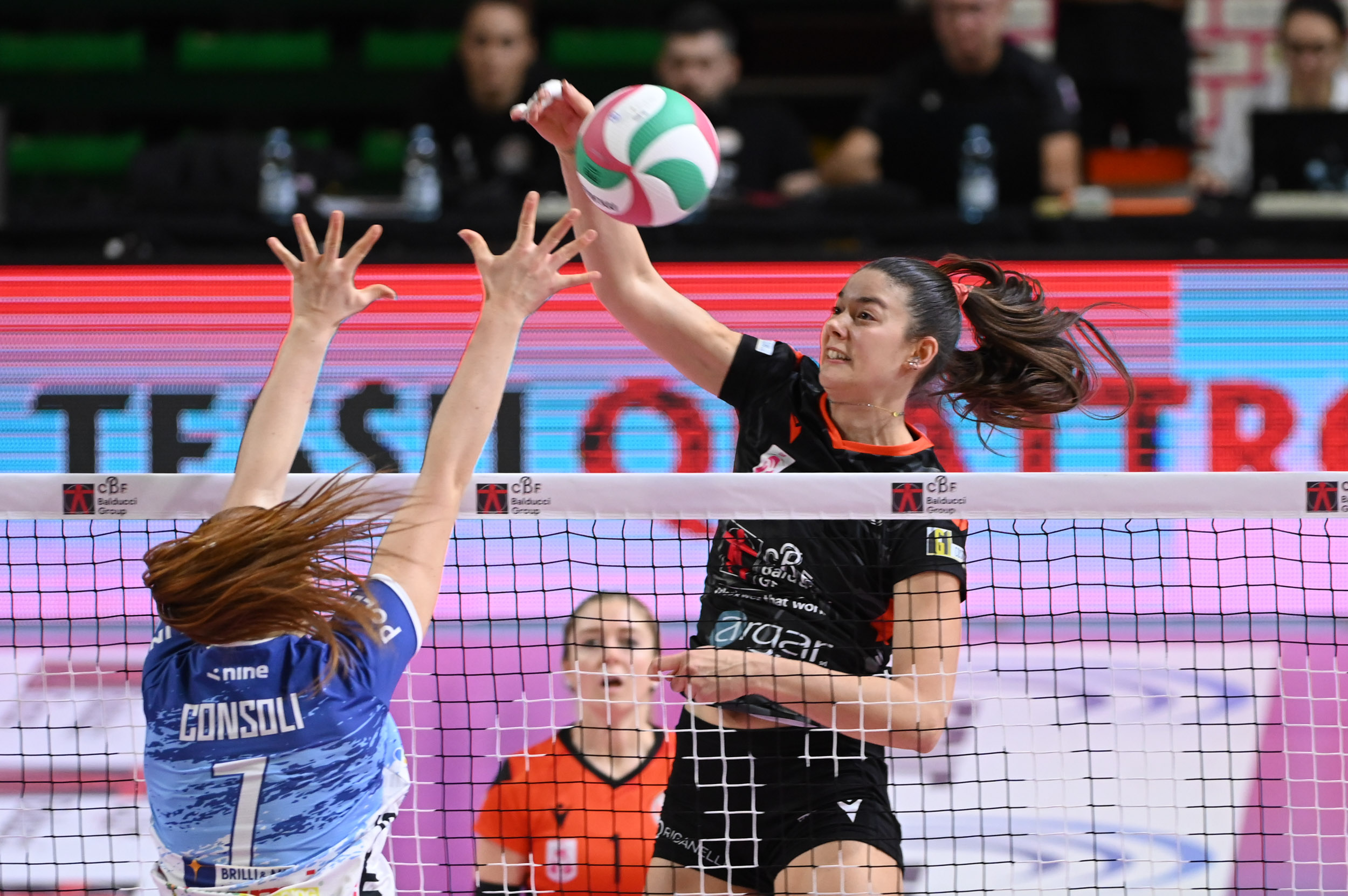 Terzo set che vede le arancionere andare subito sul 5-2 poi il servizio di Ghibaudo (rimasta in campo in regia) firma il 5-5. Bolzonetti firma il nuovo +2 (9-7), la CBF Balducci HR riprende a concretizzare in attacco le difese di Bresciani con Civitico e Korhonen (14-9), Mazzon mette giù il 17-12 ma poi viene fermata a muro (17-14), c’è Busolini in campo per Civitico. Ora le arancionere faticano a trovare la stessa continuità in attacco e la Omag-MT arriva a -1 (18-17), arrivano però l’errore di Giacomello (20-17) e l’incomprensione sul palleggio di Ghibaudo (22-18). Consoli mura Korhonen (22-20), Ortolani attacca out (24-21) e l’opposta finlandese si rifà chiudendo la contesa 25-21.