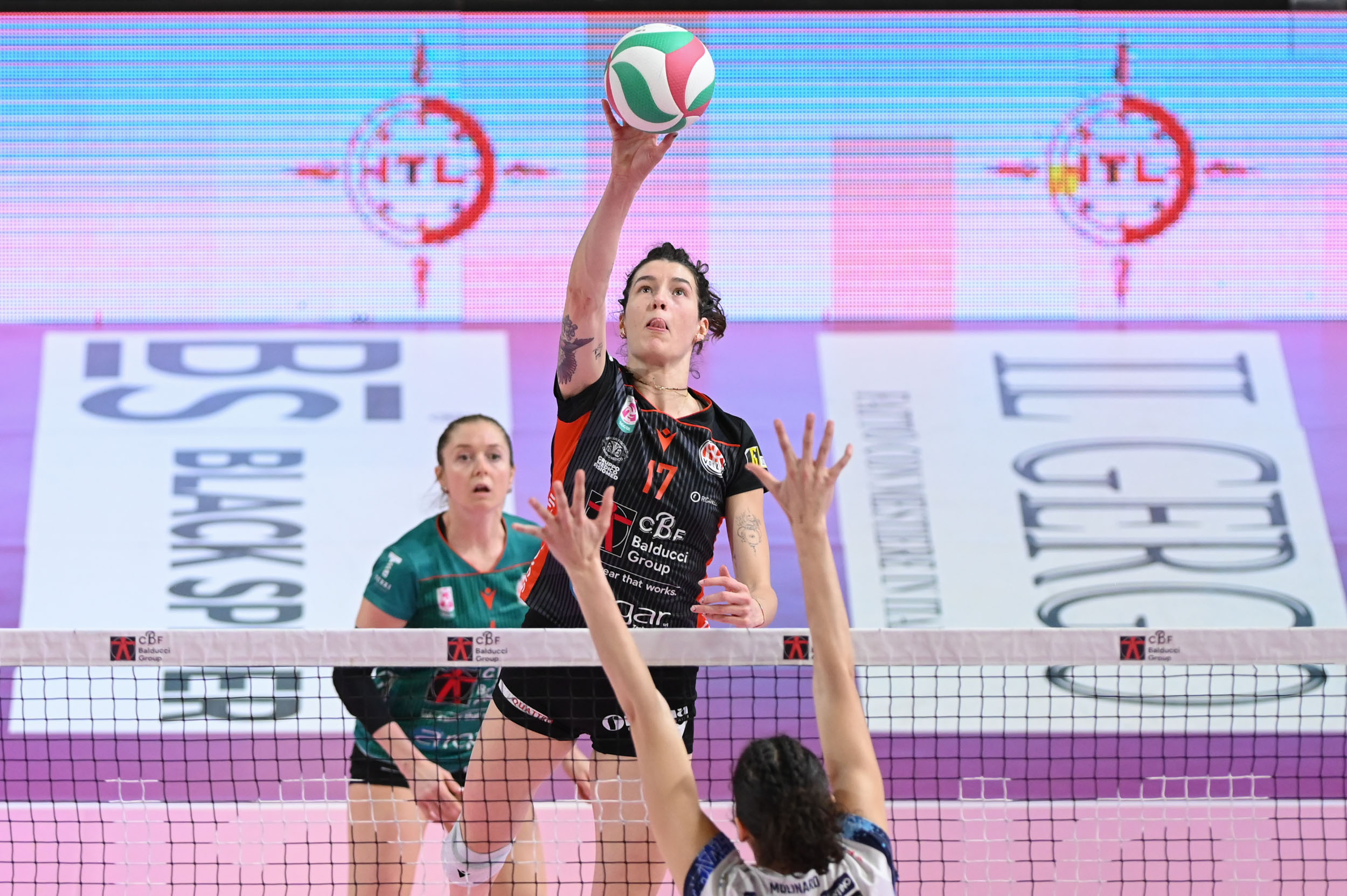 Trento parte meglio nel terzo set, complici due errori arancioneri (1-4) con Ristori e Pizzolato in campo, poi Ristori sbaglia (5-6), Caruso ferma Pizzolato (6-6) e Weske (7-6) ma Molinaro risponde su Battista (7-8). Decortes va a segno (8-8), Caruso anche (9-9), c’è l’ace di Molinaro (10-12), Decortes non trova il campo (10-13), entra Allaoui per Bonelli in regia, c’è l’errore di Bulaich, 10-14. Mazzon va in primo tempo (11-14), Decortes mette il 12-15, arriva l’ace di Kosareva (12-17), c’è Morandini al servizio sul 13-17, Caruso mura il 14-17. Entra Fiesoli per Battista, il muro di Allaoui è sulla riga (15-18), Decortes la sfiora (16-20) e arriva il muro di Kosareva (16-21). Bulaich c’è (17-21 e 18-22) ma arriva l’ace di Prandi (18-24), Mazzon ci prova (19-24), c’è il muro di Allaoui (20-24), Weske chiude 20-25.