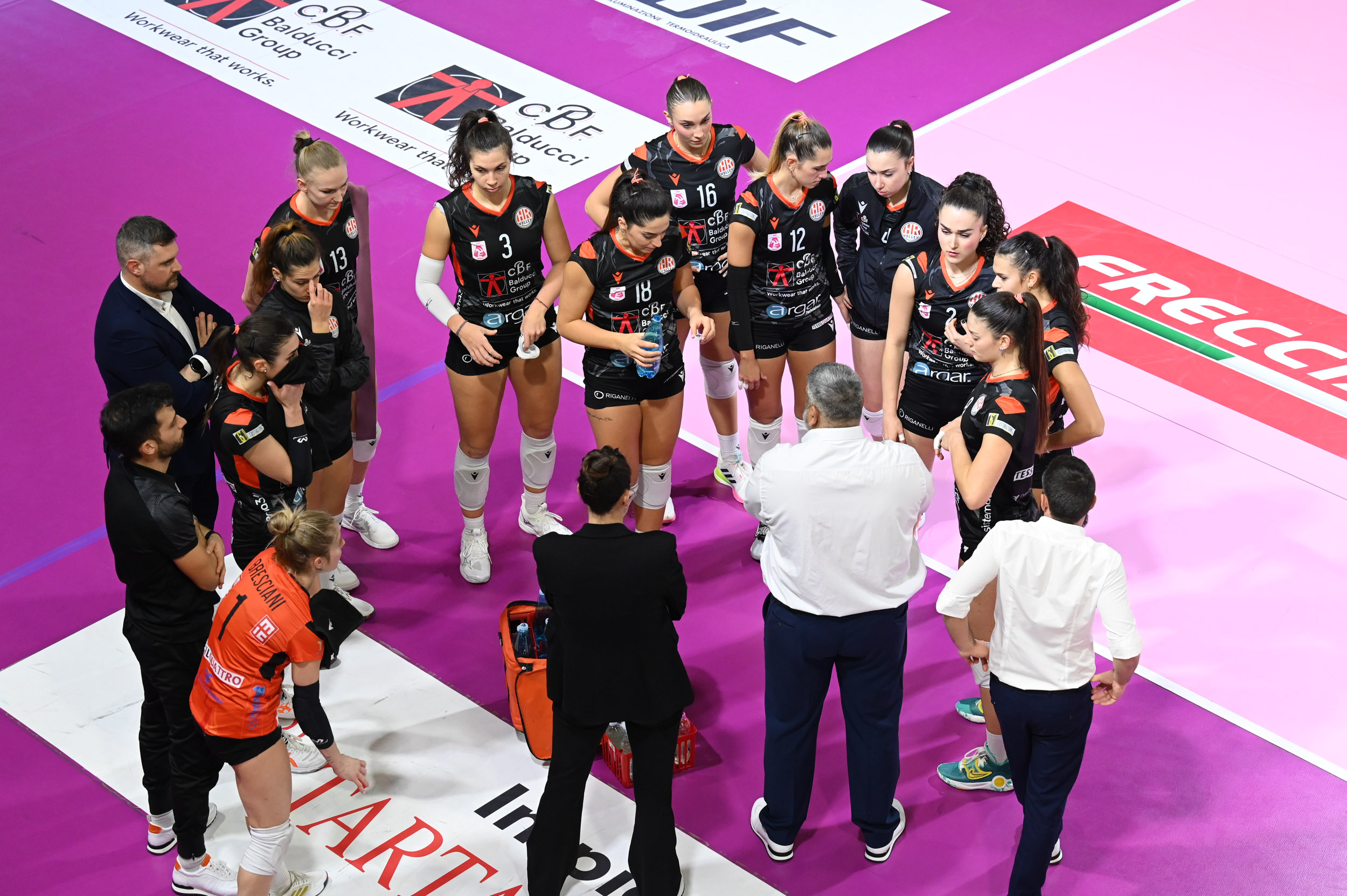 Asia Bonelli (palleggiatrice CBF Balducci HR Macerata): “Diciamo che sono venute a mancare tante cose e siamo state in primis molto disordinate su tutti i contrattacchi e molto disordinati anche in muro-difesa. Un po’ siamo andati in un loop negativo e quindi sono non sono venute molte cose stasera. Noi ripartiamo da qui, da questi errori e torniamo a lavorare in palestra per la prossima”.