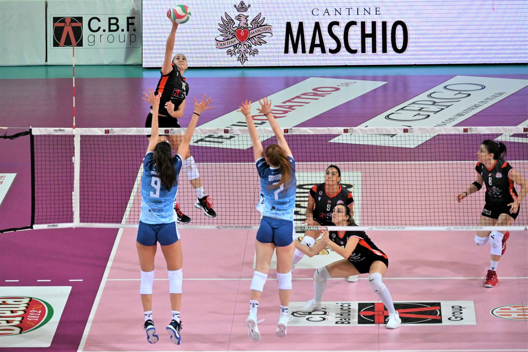 Coach Luca Paniconi conferma il sestetto della prime uscite con la diagonale Ricci-Malik, Fiesoli e Michieletto in banda, Pizzolato e Martinelli centrali e Bresciani libero. Enrico Barbolini dall'altra parte inizia con Turco e Ortolani sulla diagonale, Brina e Coulibaly schiacciatrici, Consoli e Mazzon al centro con Bonvicini libero.
