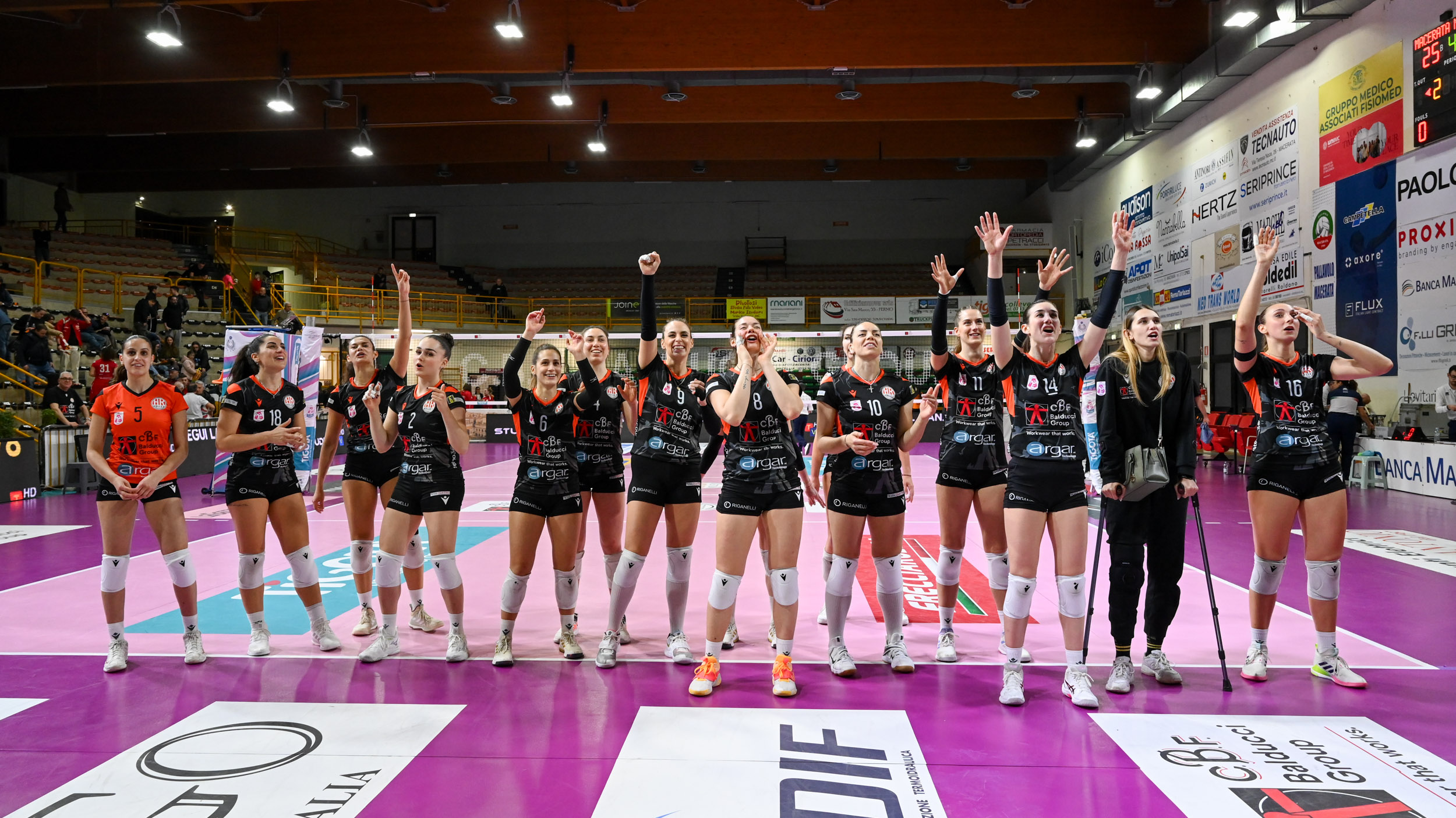 La prima partecipazione ai Playoff nel 2020/21 ha visto l’eliminazione nel primo turno dei Quarti di finale da parte di Sassuolo chiusa con il Golden Set nel match di ritorno a favore delle emiliane (3-2 e 2-3). Nel 2021/22, invece, la splendida cavalcata verso la Serie A1 conquistata nella finalissima Playoff con Mondovì in tre gare (3-2, 1-3, 3-2). In precedenza le arancionere avevano superato Soverato negli ottavi di finale (3-0, 3-0), Sassuolo nei quarti di finale (3-1, 3-1) e Talmassons in semifinale (3-0, 3-0), chiudendo i Playoff quindi con una sola sconfitta su nove gare disputate.