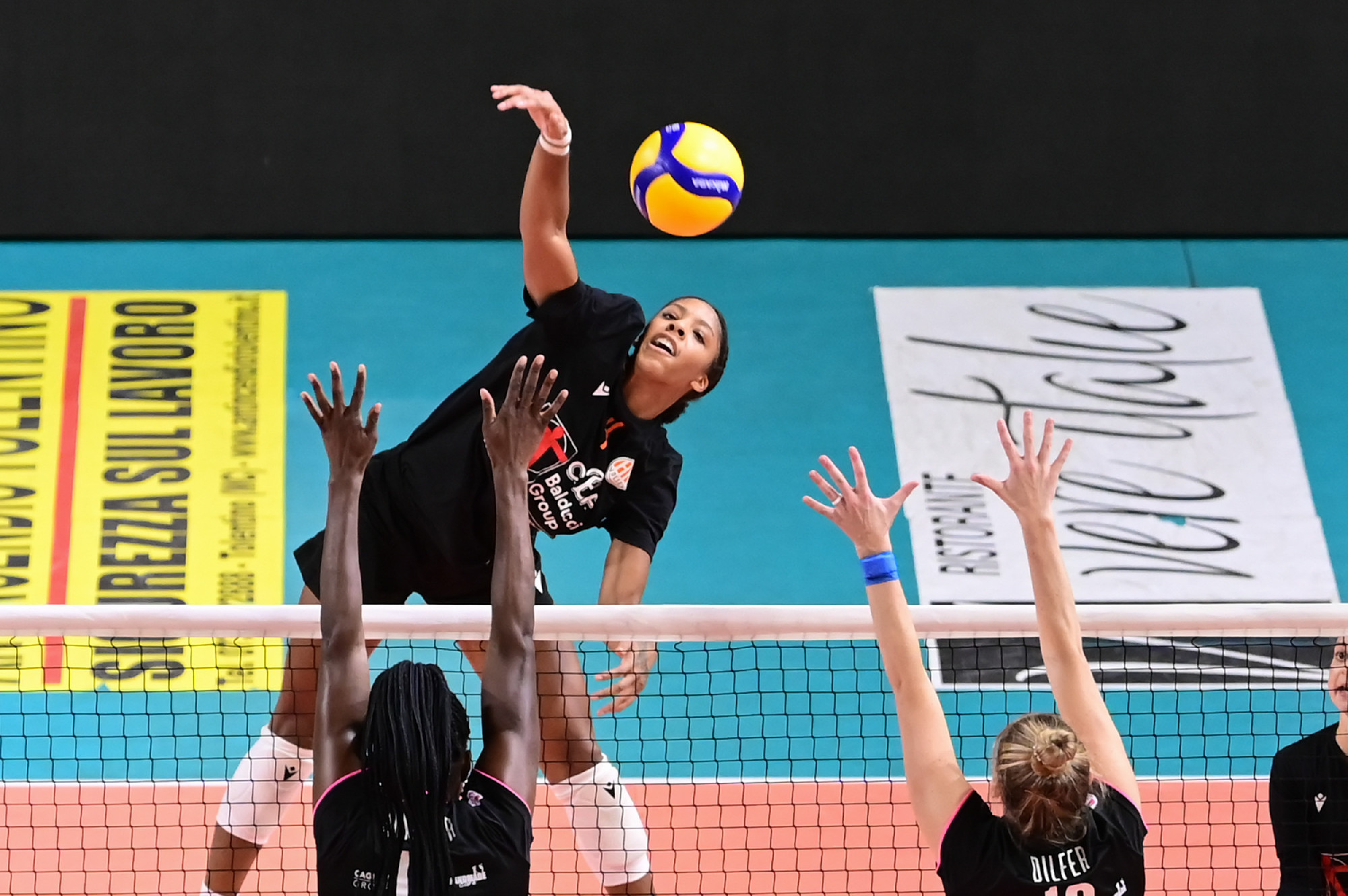 Per coach Paniconi (ancora senza Lipska a disposizione) c’è Ricci in regia, Malik opposta, Cosi-Molinaro centrali, Abbott-Fiesoli in banda, Fiori libero. Perugia (senza l’olandese Polder e con il primo allenatore Bertini e il secondo Giovi assenti perché impegnati in Nazionale, in panchina c’è il terzo Freschi) in campo con Dilfer-Samedy, Nwakalor-Bartolini, Guerra-Lazic, Armini libero.