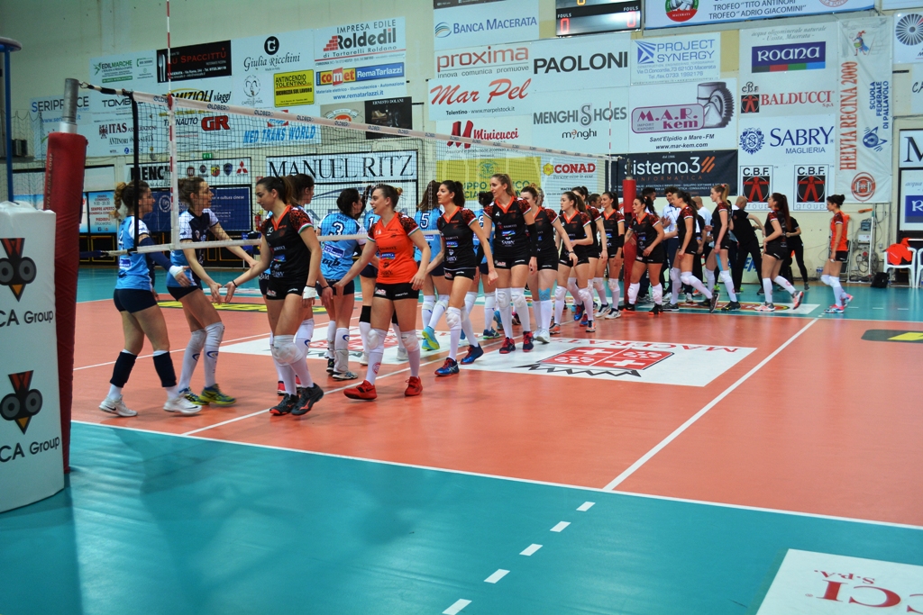 ROANA CBF HR VOLLEY MC - BLU VOLLEY QUARRATA PT 3 - 0 Roana CBF: Pomili V. 8, Armellini G. ne, Spitoni B. ne, Gobbi M. 8, Partenio S. 6, Patrassi A., Grilli G. 6, Peretti I. 1, Rita E. 3, Zannini S. (L1), Malavolta G. (L2), Di Marino C. 12, Barbolini V. 12. All. Paniconi Blu Volley: Zingoni A. 1, Baldi V. 1, Gradi S. 2, Donnini S. 1, Chiti F. (L1), Poggi A. 6, Cheli G., Bianciardi G. 5, Nesi E. 7, Degli Innocenti I. 2, Rosso M. 1. All. Torrachi ARBITRI: Frattone - Binaglia PARZIALI: 25 – 17 (22’); 25 – 11 (18’); 25 – 11 (23’) NOTE: Roana CBF: 10 ace, 4 muri, 19 err. avv., 42% in ricezione (28% perfetta), 40% in attacco; Blu Volley: 2 ace, 5 muri, 13 err. avv., 26% in ricezione (11% perfetta), 23% in attacco. Comunicato Stampa ASD HR Volley MC
