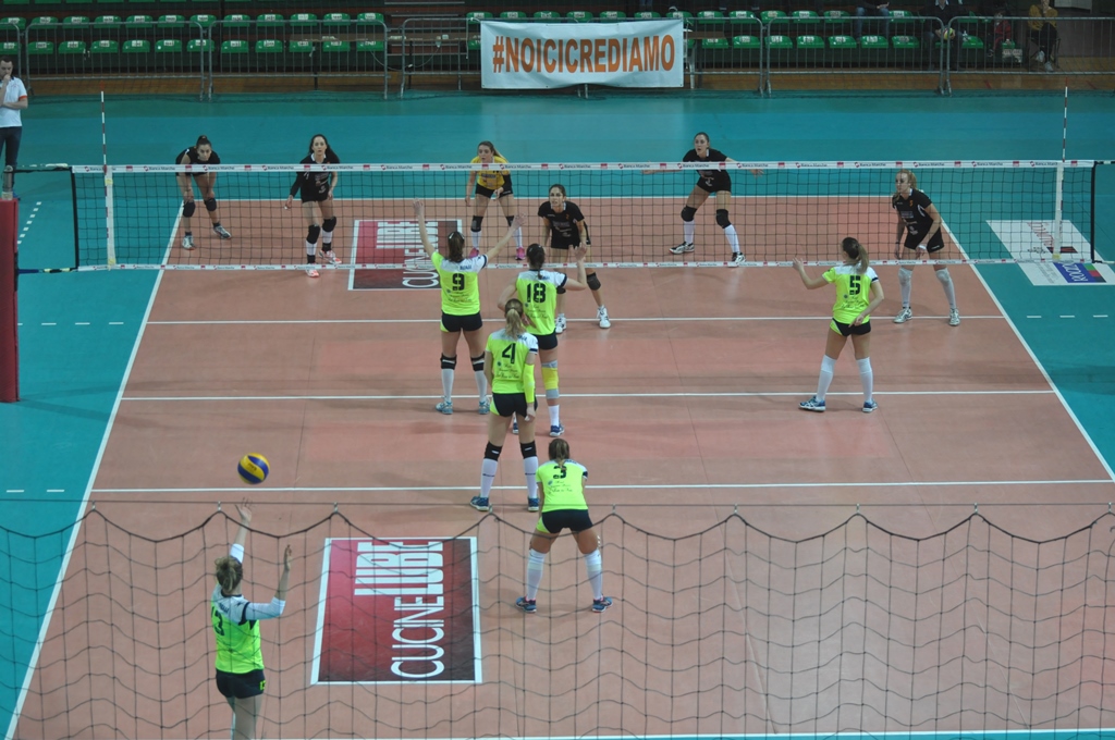 La Roana Cbf si prende la sua rivincita riscattando la brutta prestazione dell'andata e vincendo 3 a 0 contro TORRE VOLLEY. Parte in sordina nel primo set giocando punto punto fino all'8 pari, poi le maceratesi conquistano un break con due errori delle ospiti e due muri di Lombardi, dando così la carica per portare avanti la squadra arrivando al massimo vantaggio di 23 / 15. Si chiude 25 a 18. L'avvio del secondo set sembra identico al primo, questa volta il break arriva sul 7 pari, poi la Roana Cbf allunga di 5 punti. TORRE non riesce più a rientrare in partita, molto fallosa sul fondamentale di attacco rende la vita facile alle padrone di casa. Finisce 25 a 18 senza troppe sbavature della compagine maceratese. Nell'ultimo set, Armellini e compagne, entrano agguerrite e solcano subito il primo parziale nel primo turno di battuta, 6 a 0, Torre molla, cerca qualche giocata soprattutto alle bande, ma il set va via liscio senza troppi patemi, si chiude 25 a 21. Alle maceratesi va il merito di non aver abbassato troppo la guardia e di aver portato a casa altri tre punti, pronte già a pensare alla prossima trasferta a Perugia, la strada è ancora lunga da percorrere, ma sembra essere un'ottima strada.
