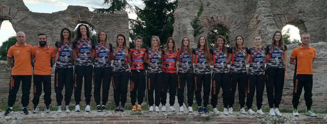 La Roana Cbf Macerata è pronta per la battaglia del campionato di serie B1. È stata infatti presentata oggi la nuova maglia da gioco delle atlete maceratesi che fin dal primo impatto ricorda la mimetica. Nello scenario del teatro romano di Villa Potenza la società, rappresentata dal presidente Pietro Paollela, il vice presidente Maurizio Storani e il responsabile marketing e comunicazione Massimiliano Balducci, hanno prima dato il benvenuto davanti alla stampa alle ultime due giocatrice arrivate: Greta Malavolta e Chiara Costagli. Per la prima un ritorno nella società arancionera, mentre per la giovanissima Chiara questa è la prima stagione a Macerata. La nuova maglia è stata mostrata dalla squadra dopo una piccola sfilata tra i ruderi romani. Nata dall’idea di Massimiliano Balducci e dell’azienda Macron, la linea della divisa è unica nel suo genere e ricorda i colori sociali, arancione e nero, sia per i due liberi che per le altre giocatrici. Un ritorno alle origini proprio nel luogo da cui la società prende il nome e che si spera posso arrivare sempre più in alto.