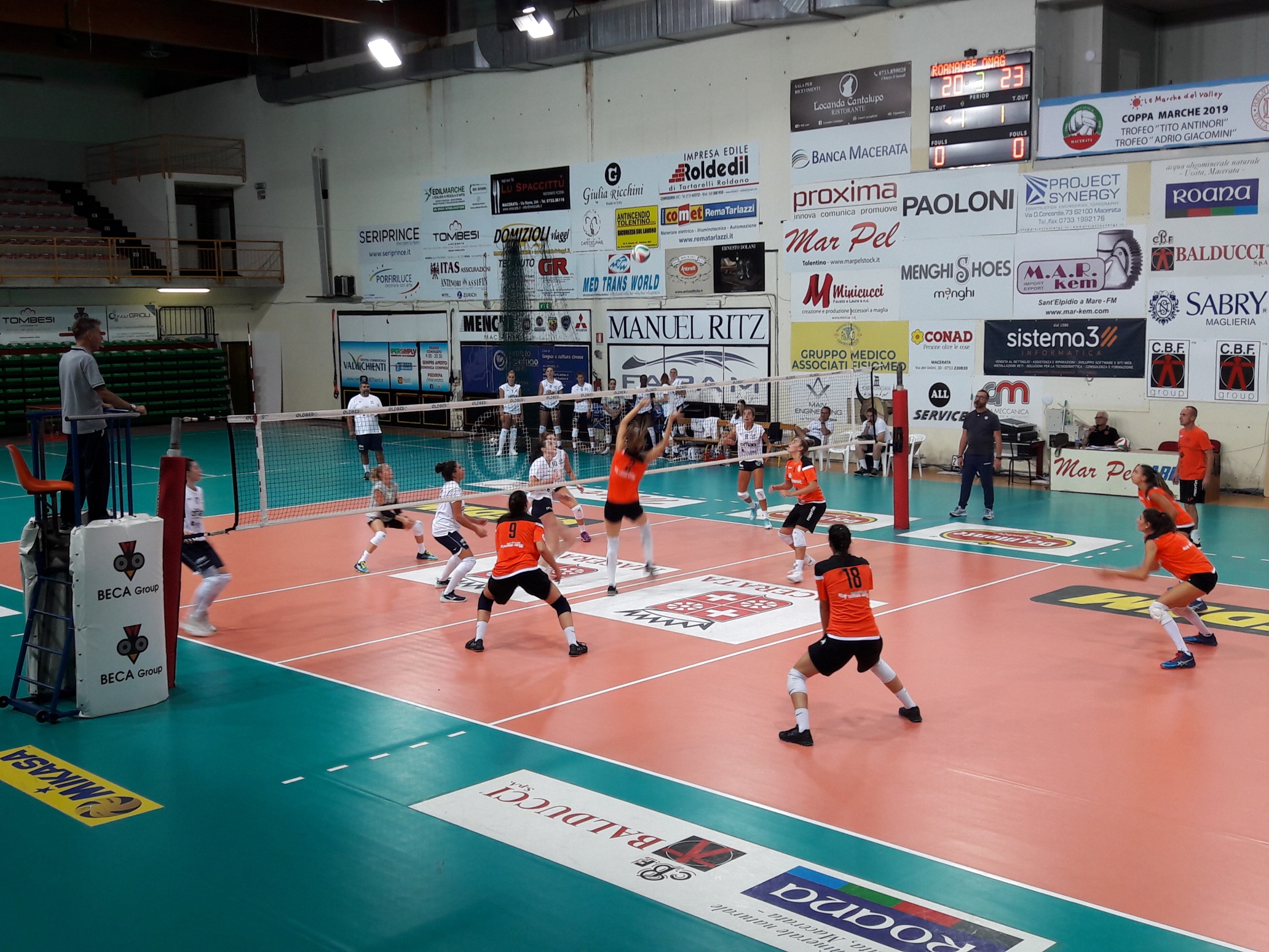 Nonostante la sconfitta al tie break buone indicazioni per coach Luca Paniconi dopo il primo test contro la Omag Consolini Volley di San Giovanni in Marignano, allenamento congiunto andato in scena alla Marpel Arena. 20-25, 26-24, 21-25, 25-22 e 12-15 i parziali di una sfida che ha visto la Roana Cbf Helvia Recina Macerata tenere botta e rimanere sempre in carreggiata fino al tiratissimo quinto set dove le padrone di casa hanno rischiato anche il colpaccio finale annullando 3 match ball alle avversarie. Un approccio agonistico che ha colpito in positivo il coach delle maceratesi. "Sono molto contento di quello che ho visto - conferma il coach -. Abbiamo provato anche a vincerla ma al di là del risultato che adesso conta davvero poco la prestazione mi è piaciuta, ho visto tante cose buone. Ovviamente c'è ancora molta strada da fare ma stiamo andando bene e credo che ci possiamo avvicinare all'esordio in campionato con uno spirito positivo". Rotazione a 360 gradi per la rosa nel corso dei 5 set rispetto al sestetto di partenza con la diagonale Lancellotti-Smirnova, Martinelli e Rita al centro e la coppia Kosareva-Pomili in banda, con Pericati libero. Tutte le giocatrici a disposizione sono state chiamate in causa, e tutte hanno dato il loro contributo. "Rispetto al lavoro fatto finora mi è piaciuto più l'approccio a situazioni di attacco più complicate - ha spiegato Paniconi - Ho visto capacità di gestione e lucidità. Abbiamo fatto buone cose a muro, un fondamentale che credo le ragazze abbiano le qualità per interpretare al meglio. Sappiamo che abbiamo situazioni nelle quali dobbiamo lavorare sulla combinazione muro-difesa per trovare contromisure che sicuramente ci sono". Nell'occasione, che ha visto anche la partenza della campagna abbonamenti, è stato presentato anche il settore giovanile dell'Helvia Recina Volley ed è stata annunciata la prossima iniziativa dell'ADMO (Associazione Donatori Midollo Osseo) Macerata, CorriAdmo, la corsa/passeggiata non competitiva ed inclusiva in programma nella mattinata di domenica 22 settembre con partenza da Piazza Mazzini (ritrovo alle ore 8). Un'occasione per divertirsi, fare sport e promuvere la donazione del midollo osseo. Prossimo allenamento congiunto in programma mercoledì 18 settembre alle ore 17 a Filottrano contro la Lardini.