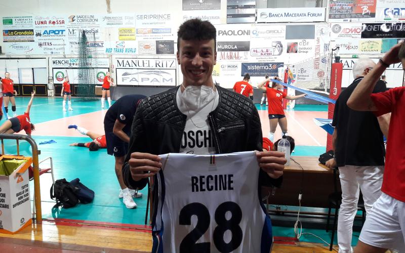 Nel pre-riscaldamento dell'allenamento congiunto della CBF Balducci HR Macerata con la Tenaglia Altino Volley, la graditissima visita di Francesco Recine, neo...